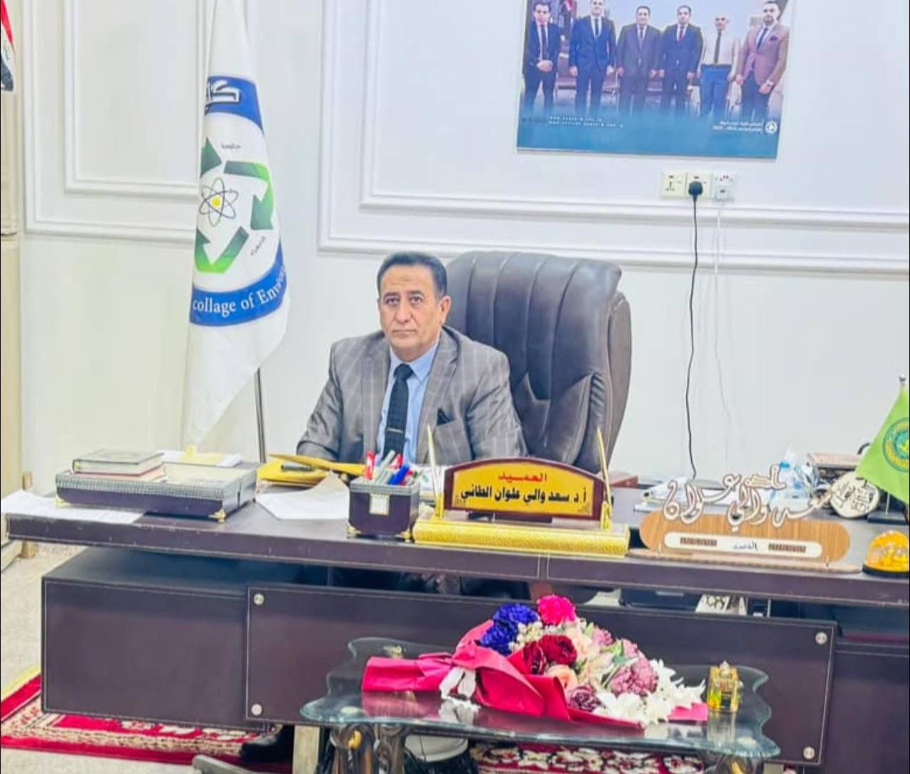 الدكتور حازم عزيز الربيعي عميد كلية علوم البيئة جامعة القاسم الخضراء يحصل على درع البيئة